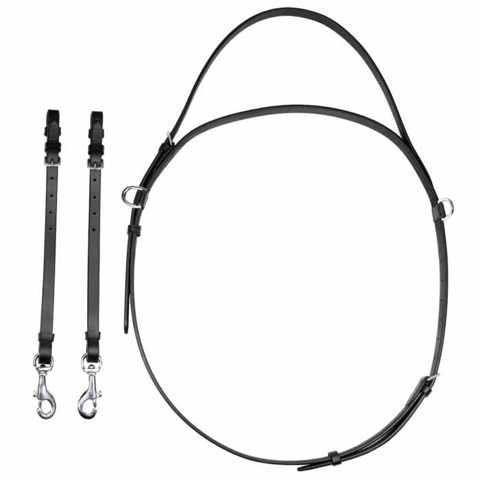 The adaptors are available in two sizes. 65cms which is suitable for attaching to a breastplate or a smaller horse to the D rings of the saddle or 85cms which is suitable for attaching to the D rings of a saddle on a larger horse.