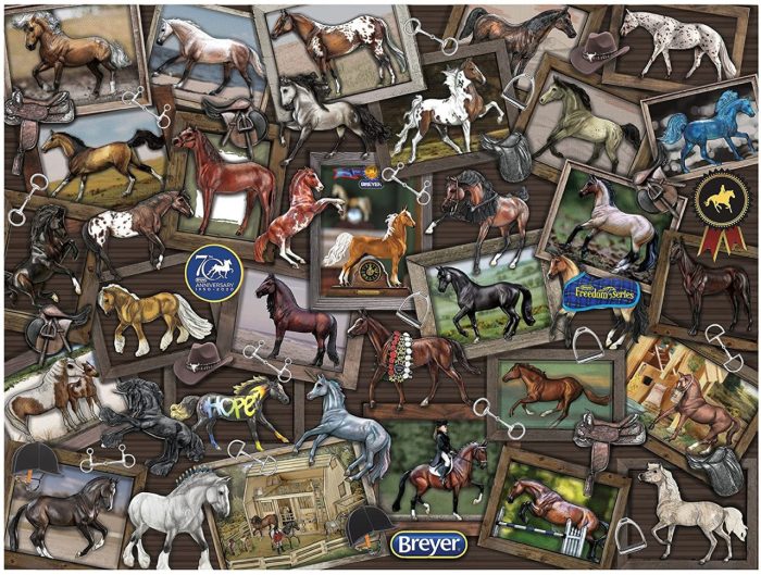 This 500 piece puzzle features colorful images of over 30 favorite Breyer® models.